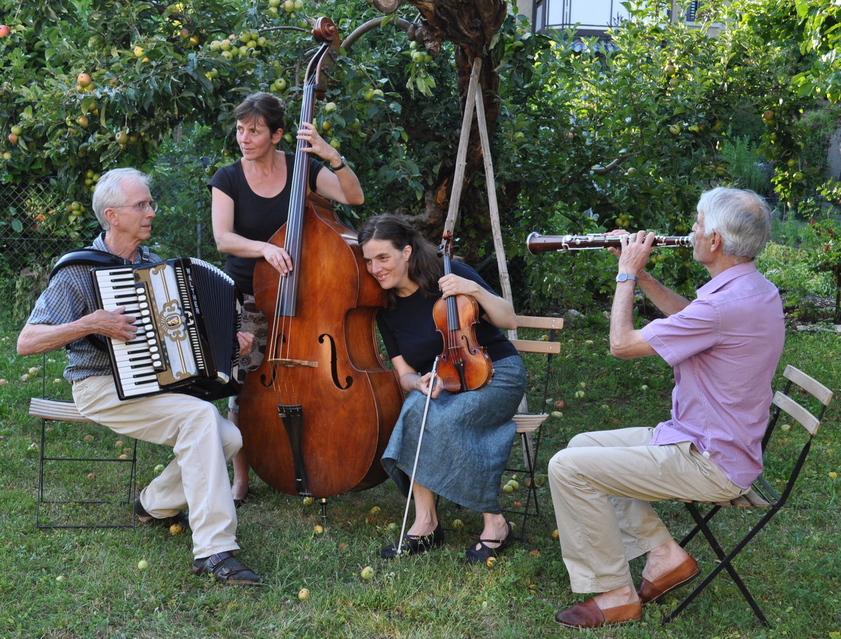 Anne Seiterle (Kontraass/Stimme), Désirée Senn (Violine/Stimme), Rebekka Weber (Klavier), Albert Kind (Akkordeon) und Andres Tschumi (Klarinette, Taragot).